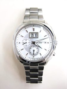 シンプルなデザインにカレンダーを大胆にレイアウトした腕時計です
