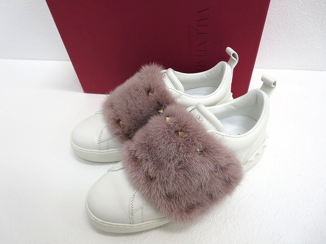 ミンク毛皮×スタッズ レザースニーカー