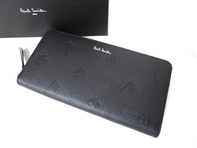 【PAUL SMITH/ポールスミス】ポールドローイング ラウンドファスナー長財布 黒 PSC007