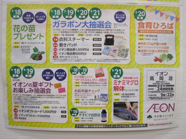 イオン高岡店では開店記念祭が行われます