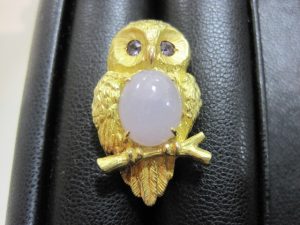 大きな色石の付いた 梟のペンダントトップです