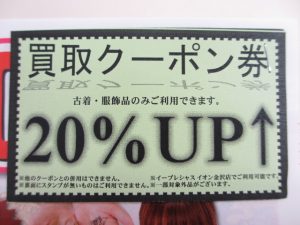 クーポン持参で古着、服飾品が通常査定金額より20%UP