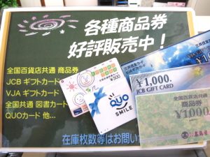 全国百貨店共通商品券やJCBギフトカード、図書カードなどがメインになります。
