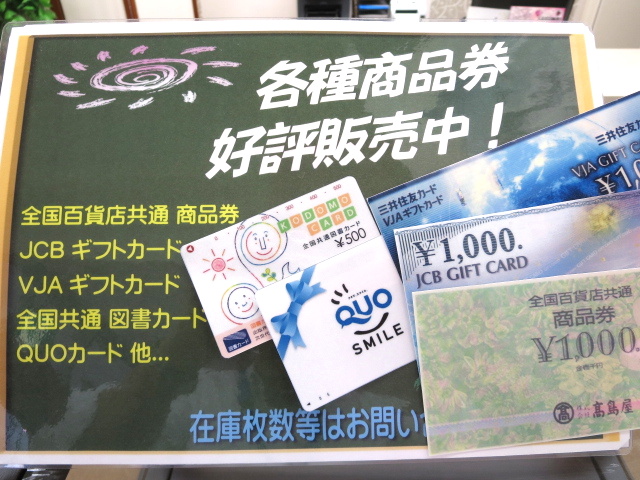 お客様の要望等で取り扱う商品券の種類も考えてまいります。